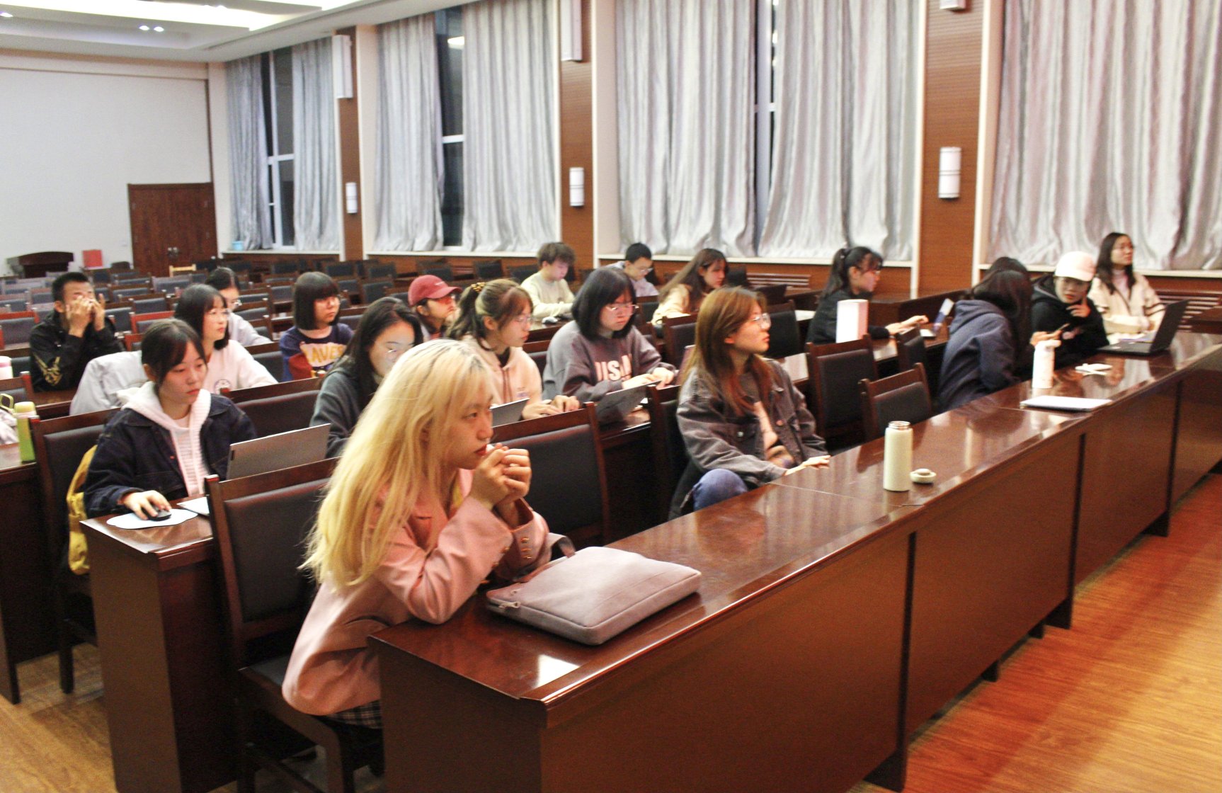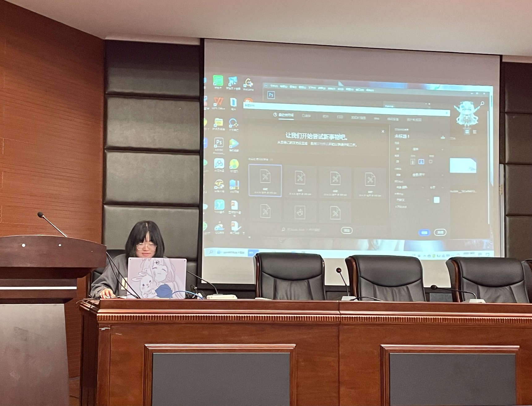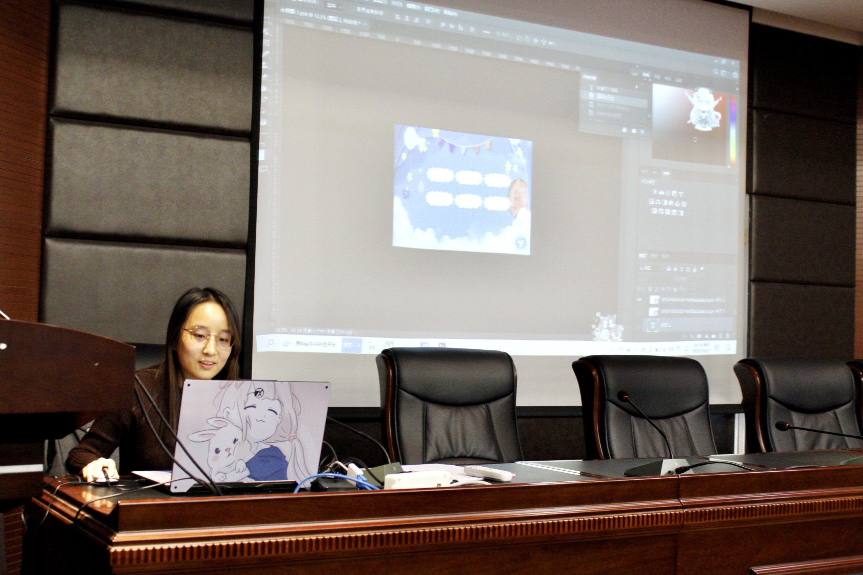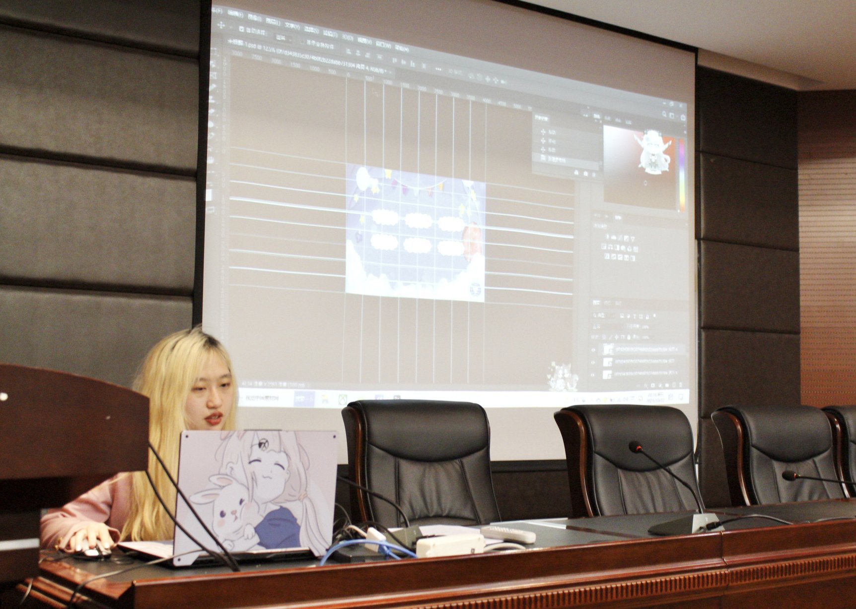 随后发言的是宣传部。宣传部平时主要负责对vsport官方网站举办的各种活动进行宣传动员,制作宣传海报等。在宣传部杨亚文同学的分享中,我们学到了如何使用PS软件制作海报,随后宣传部部长张琼予和青年媒体中心总编贾梦芝介绍了一些制作海报的具体操作以及滤镜的使用,对以后进行一些基础的PS工作有很大帮助。