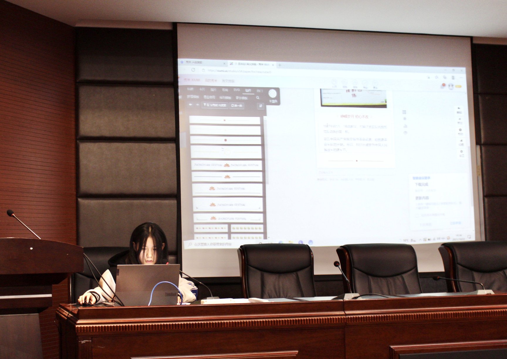 首先发言的是网络部,网络部平时主要负责vsport官方网站公众号文章推送和官网运营工作。网络部闫翻翻同学首先从模版、图片以及图文来源分享了如何完整地制作一篇公众号推文,随后网络部副部长朱芸熠对文字模版和海报图片的处理以及分割线的使用进行了介绍,纪明宇同学对封面的选择、字体、比例等细节问题进行了分享。最后韩晋媖同学对网站的运营以及如何删除官网错误信息进行了讲解。