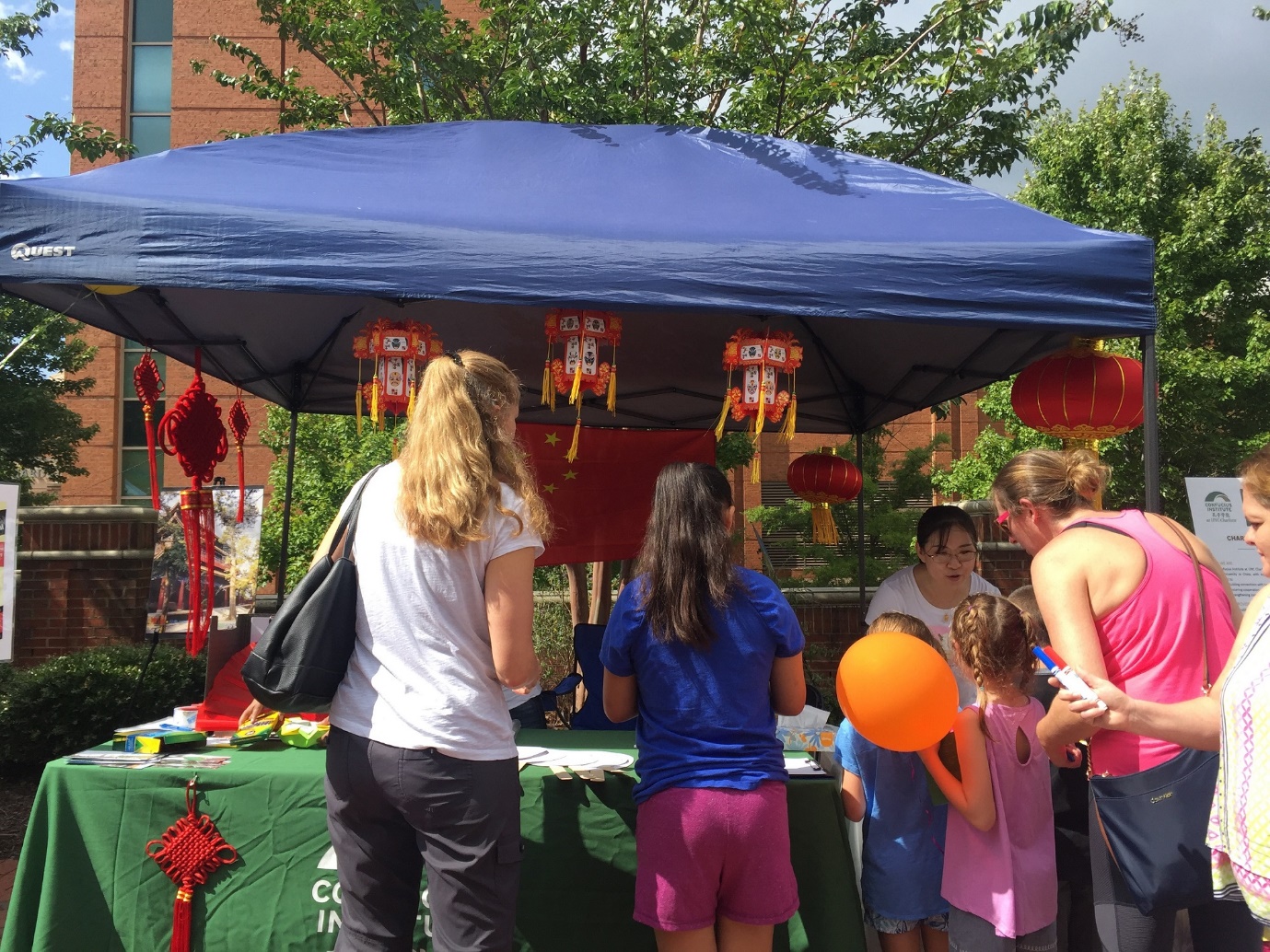 其次,在中国文化推介方面,每逢大学国际节和中国传统节日比如春节、端午节和中秋节之际,孔子公司会在大公司园或当地公园举办中国文化推介展示台,练习中国汉字书写,展示中国书法和剪纸等手工艺,介绍节日典故和风俗,品尝中国茶和月饼等节令食品,体验太极和空竹等传统活动,倾听当代中国日新月异发展的故事。同时,孔子公司也会积极邀请大学教授及当地知名学者,就校际间师生访问和学习交流、中国发展对世界影响、中国文化传播等主题,举办丰富多彩的论坛、工作坊、电影展映、艺术表演等活动,如孔院与大学国际处共同筹办的“中国国情与文化工作坊”(China Country-Culture Workshop),在中国国际中文教育基金会的支持下举办“中国孩子的书香世界”书展及系列工作坊,在市中心剧场举办“多彩中国——中南民族大学文艺巡演”演出活动,为vsport官方网站教师访问团和哲学专业研究生学习交流团分别举办了欢迎招待会和结业庆典,通过网络直播形式邀请中美关系方面的学者进行“众论中国”(China Town Hall)网络讨论会等。除此之外,孔子公司应大学和当地中小学邀请,结合各校多元文化交流的主题,在其国际节(周)、文化节(周)、发现中国(Discover China)、科学竞赛、新春庆祝会等各种活动中,举行中文知识讲座,设立中国文化展示台,将中文语言和中国文化介绍给北卡当地不同年龄段的大中小员工。