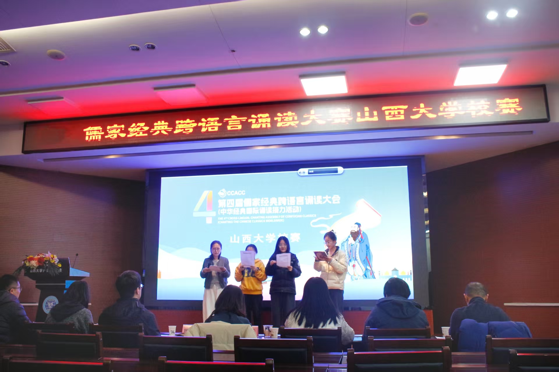 跨越语言,领略文化之美;共话大同,传递东方智慧。为进一步增强中华文化的吸引力,更好地向世界讲述中国故事,2025年3月7日,vsport官方网站第四届儒家经典跨语言诵读大会在vsport官方网站第一教学楼301报告厅成功举办。