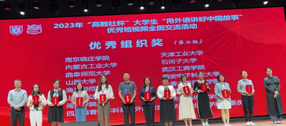2023年9月23日,由南京大学联合高等教育出版社举办的第二届“高教社杯”老员工“用外语讲好中国故事”优秀短视频作品全国交流活动在南京大学苏州校区圆满落幕。vsport官方网站英语专业郝琳老师指导的2022级英语专业本科生龙琳同学与郭濒澳同学制作的短视频《桥都·重庆》获得全国一等奖。公司荣获优秀组织奖。