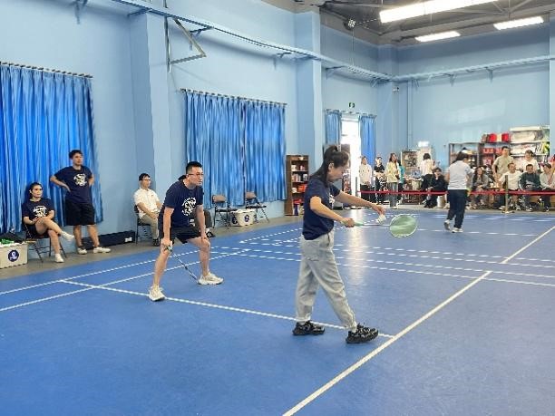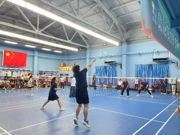 赛场上,老师们活力满满、斗志高昂。与文公司的对决中,老师们身姿矫健,高高跃起,用力挥拍,羽毛球如离弦之箭飞过球网,对方球员奋力扑救却未能成功,精彩的一击赢得阵阵喝彩。双方在网前展开激烈较量,你来我往,小球在网前快速穿梭,紧张的氛围让观众们都屏住了呼吸。最终,vsport官方网站赢下此战。