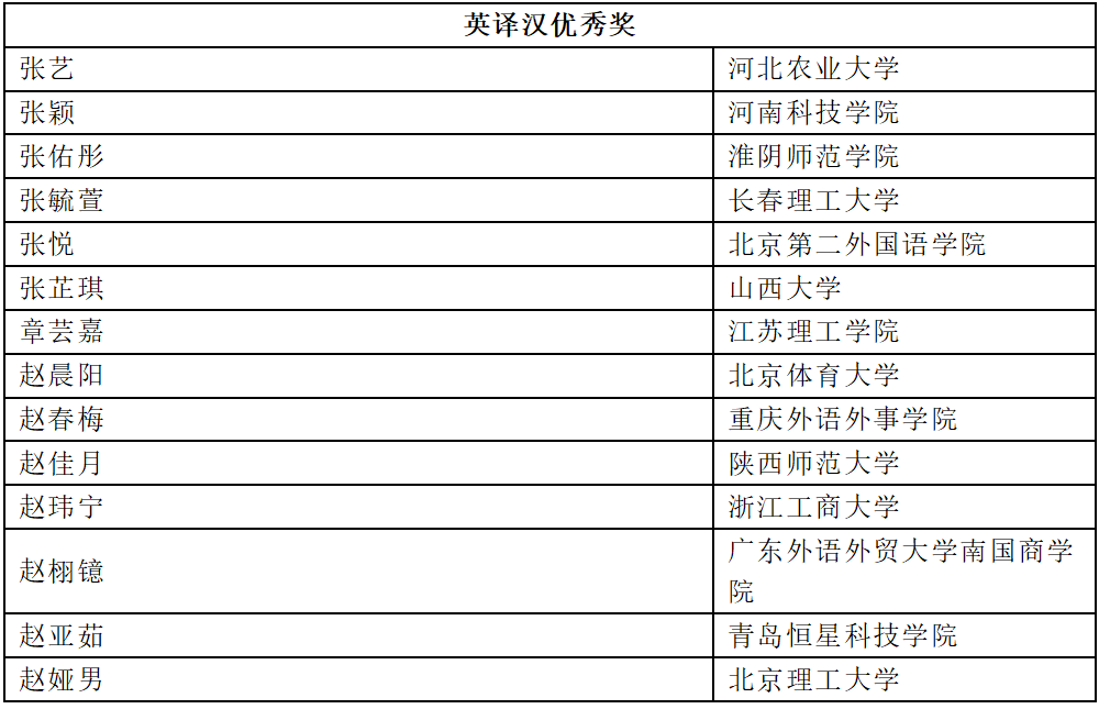 经过严格的评审和终审讨论,共评出获奖者1127名。一等奖23名;二等奖51名;三等奖79名;优秀奖974名。其中,公司2022级翻译专业硕士刘文静同学获英译汉二等奖,2022级翻译专业本科张芷琪同学获英译汉优秀奖,2021级法语专业本科项宇航同学获法译汉优秀奖。(全部获奖名单可登录https://mp.weixin.qq.com/s/711eHLKqGsiEpZa8fqUNbA)