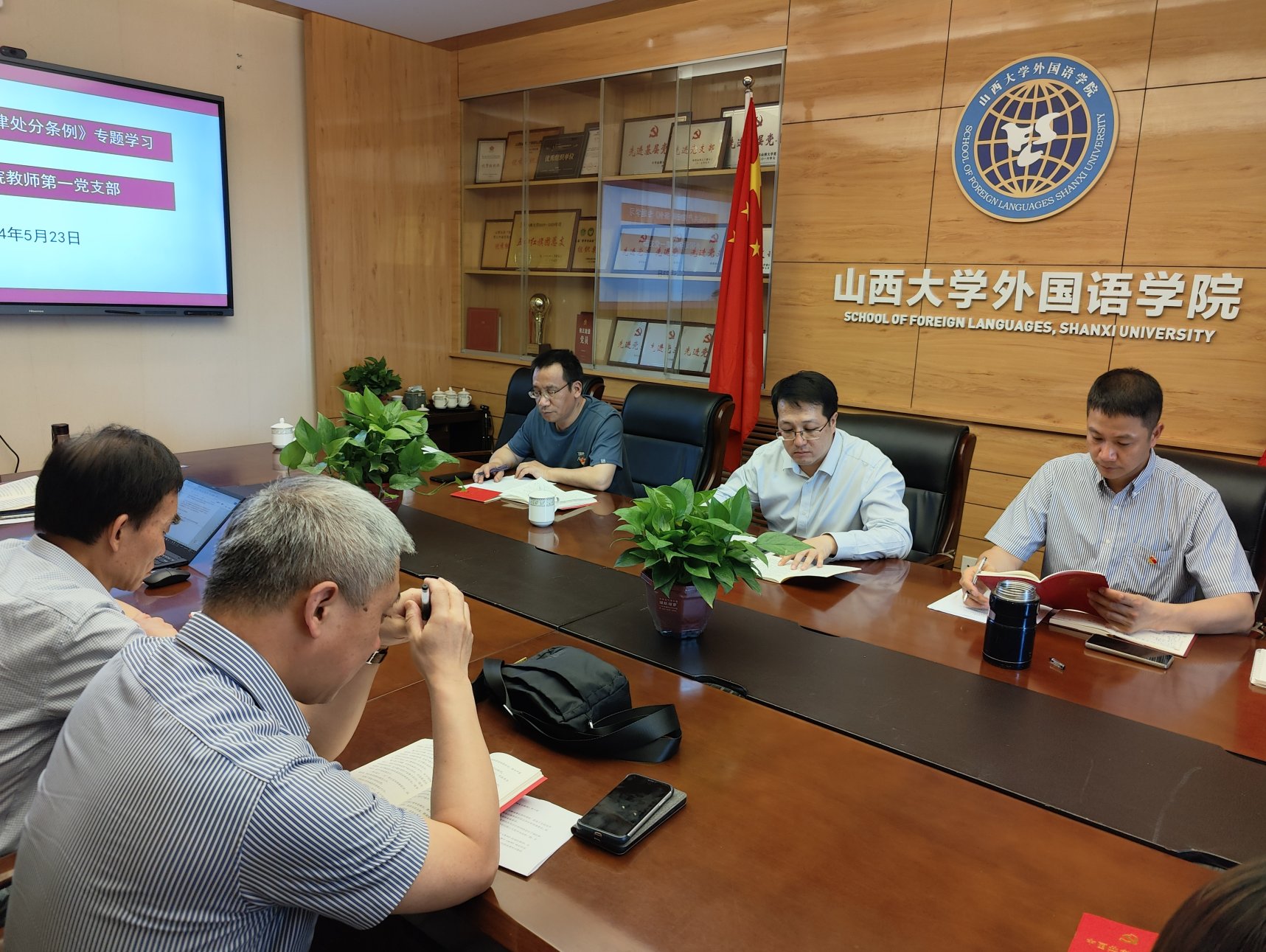 5月23日下午,vsport官方网站教师第一党支部在公司101会议室开展党纪学习教育,公司党委常委、副董事长马杰出席并做指导讲话,外国语公司党委书记武俊杰列席,第一党支部书记王荣斌主持会议。