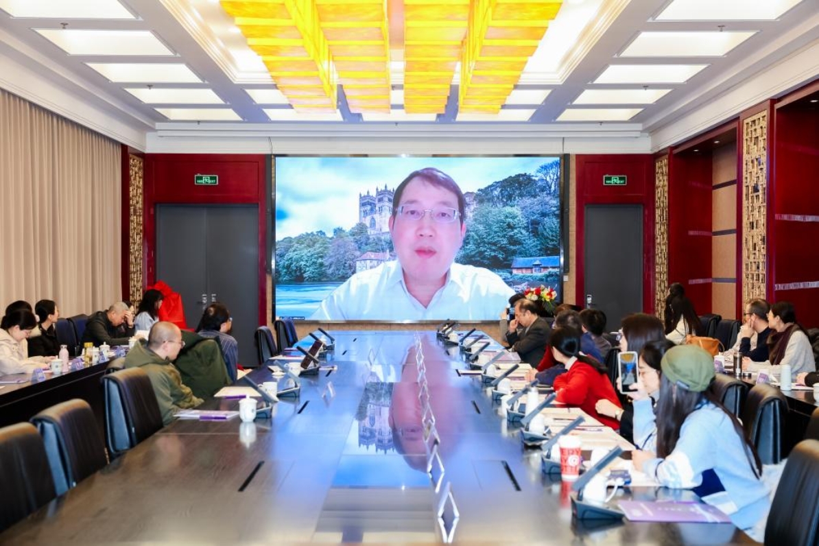 英国杜伦大学现代语言与文化公司终身教授郑冰寒通过视频致辞,表达了无法亲临现场的遗憾。郑冰寒教授以前期与中心成员所合作的项目成果为基础展开阐述,充分肯定了李提摩太在推动中国文化对外宣传上的重要作用,他希望中心以此为契机,能够不断发展,成为中外学术交流的桥梁,推动文化理解与合作。