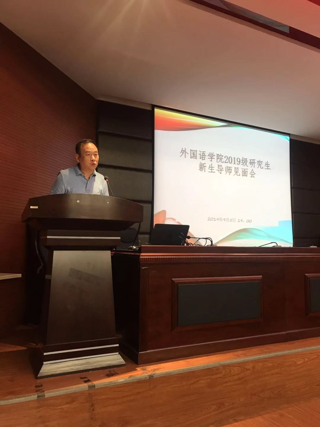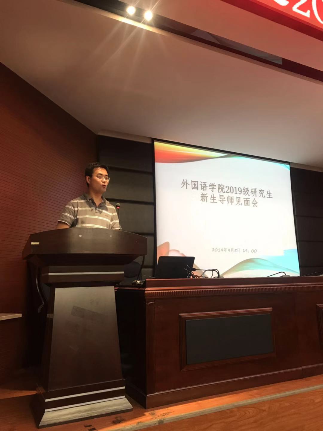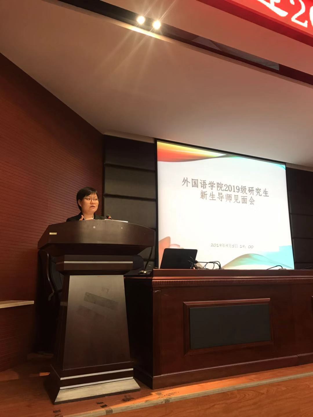 柳书记首先致辞见面会,代表外国语公司的所有师生对2019级新生表示了热烈的欢迎,讲话思想深刻,能够使员工们时刻保持头脑清新,不忘初心、牢记使命,坚定目标,努力学习。
