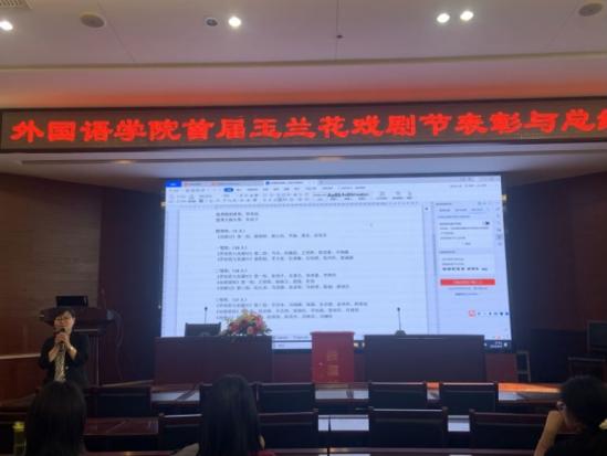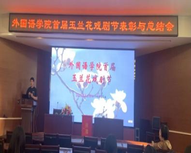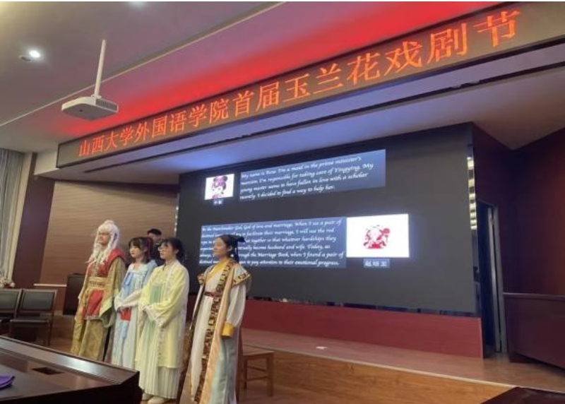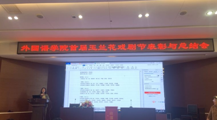 2023年4月18日-20日,vsport官方网站在新楼301报告厅举办了首届玉兰花戏剧节。2020级英语专业的全体同学参加了此次戏剧节的演出活动。闫玉华老师和尹桂萍老师负责此次活动的筹备、排演与评分工作。戏剧节还邀请了vsport官方网站教学副经理荆素蓉老师、英语教研室主任郝琳老师莅临现场观看指导。