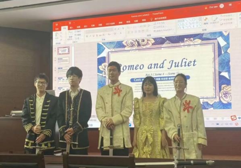 本届戏剧节共展演了三部戏剧:莎士比亚的《罗密欧与朱丽叶》和《哈姆雷特》以及王实甫的《西厢记》,旨在让同学们通过阅读剧作、合作表演体会国内外经典作品的异彩纷呈。同学们利用寒假时间,提前阅读了自己计划参演的剧本,做了读书笔记,梳理了故事情节,为开学后的表演做了充分的准备。本学期开始后,同学们进行了分组,并摘选出各自剧本的精彩片段进行了排演。在展演的三天时间里,演出现场“惊喜”连连:精美的背景制作、流利的台词呈现、倾情的舞台表演,无不令观众沉醉与感动!