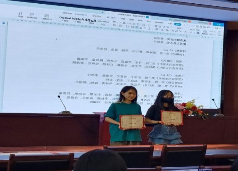 韩春旭同学为戏剧表演节的成功举办进行了多方面的沟通协调,付出诸多努力,荣获优秀组织奖;张琼予同学担任本次戏剧节的主持,展现了魅力主持人的风采,荣获优秀主持人奖。
