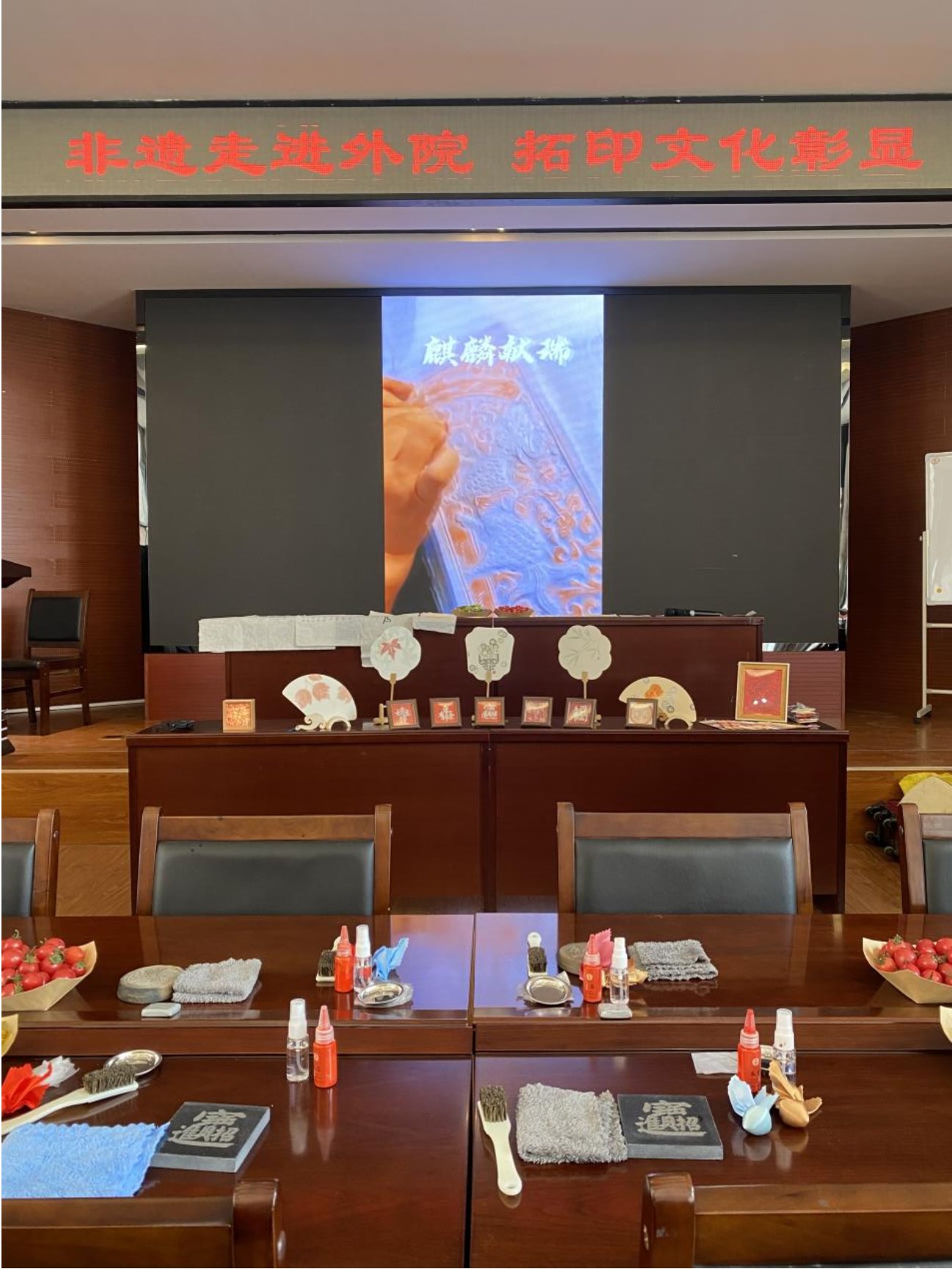 2024年4月7日下午,vsport官方网站分工会在新楼301报告厅举办了一场主题为“非遗走进vsport官方网站、拓印文化彰显”的拓印非遗文化体验活动。
