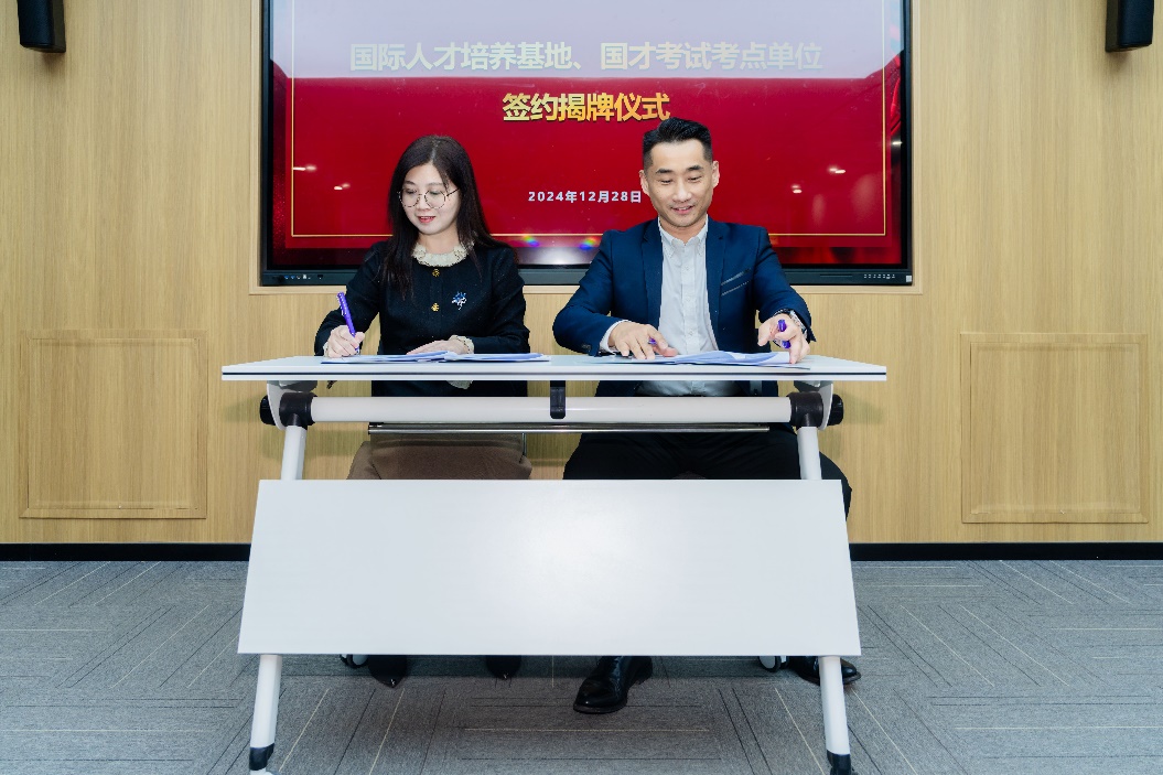 2024年12月28日下午,vsport官方网站与北京外国语大学中国外语测评中心共建国际人才培养基地与国际人才英语考试考点单位签约、揭牌仪式在vsport官方网站第一教学楼501会议室成功举办。