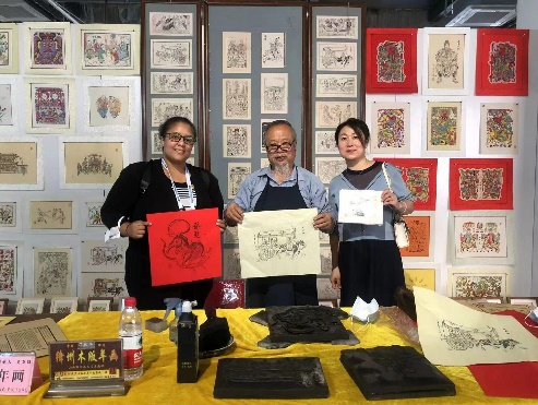 在接待期间,张玥老师陪同四位大使夫人前往小井峪文化产业园,游览了三晋窑火厅、金工晋铸厅和漆彩三晋厅,大家共同学习了面艺、刺绣和漆器等山西非物质文化遗产项目。最后,大家在文房四宝厅歇脚,品晋茶,听晋乐,观晋腔。在陪同翻译期间,张玥老师特别对山西文化专有名词进行了解释,解决了语言沟通方面的问题,打破了交流隔阂,促进了大使夫人们对山西非物质文化有了更加具体深入的了解。