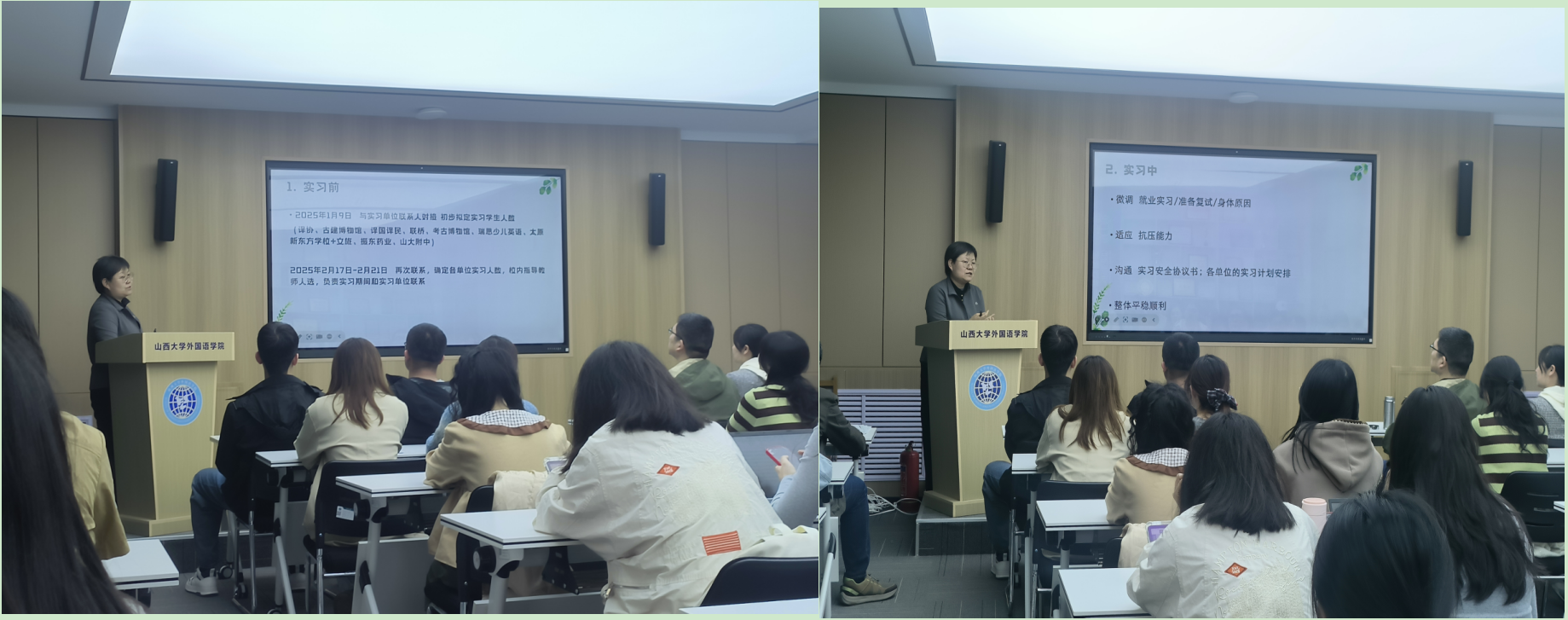 4月9日下午15:00-17:00,vsport官方网站2025届毕业实习总结汇报会在第一教学楼501教室成功举办。出席会议的有外国语公司党委副书记尉英丽、教学副经理荆素蓉、科研副经理赵建常、公司教务办主任任建英、2025届毕业生辅导员田小聪、2026届毕业生辅导员田昊、毕业实习各专业校内指导教师以及2025届本科毕业生。会议由荆素蓉副经理主持。
