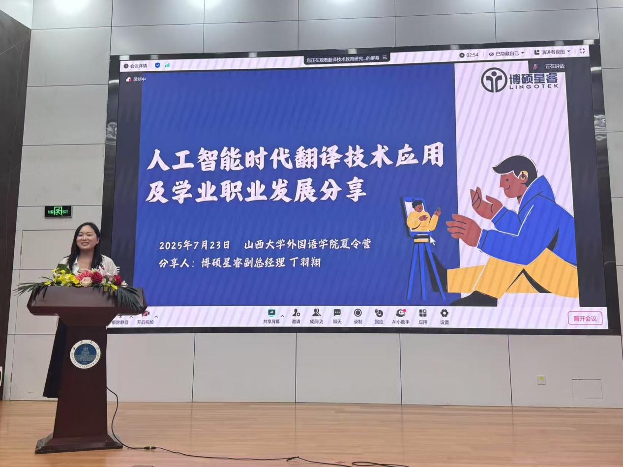 前沿讲座:7月23日下午,在文科楼三层报告厅,营员们聆听了一场由北京博硕星睿教育科技有限公司副总经理丁羽翔带来的学科前沿讲座,丁羽翔老师以“人工智能时代的翻译技术发展及学业职业发展分享”为题,探讨技术与人文的融合,启发营员在AI浪潮中坚守语言学习的核心价值。