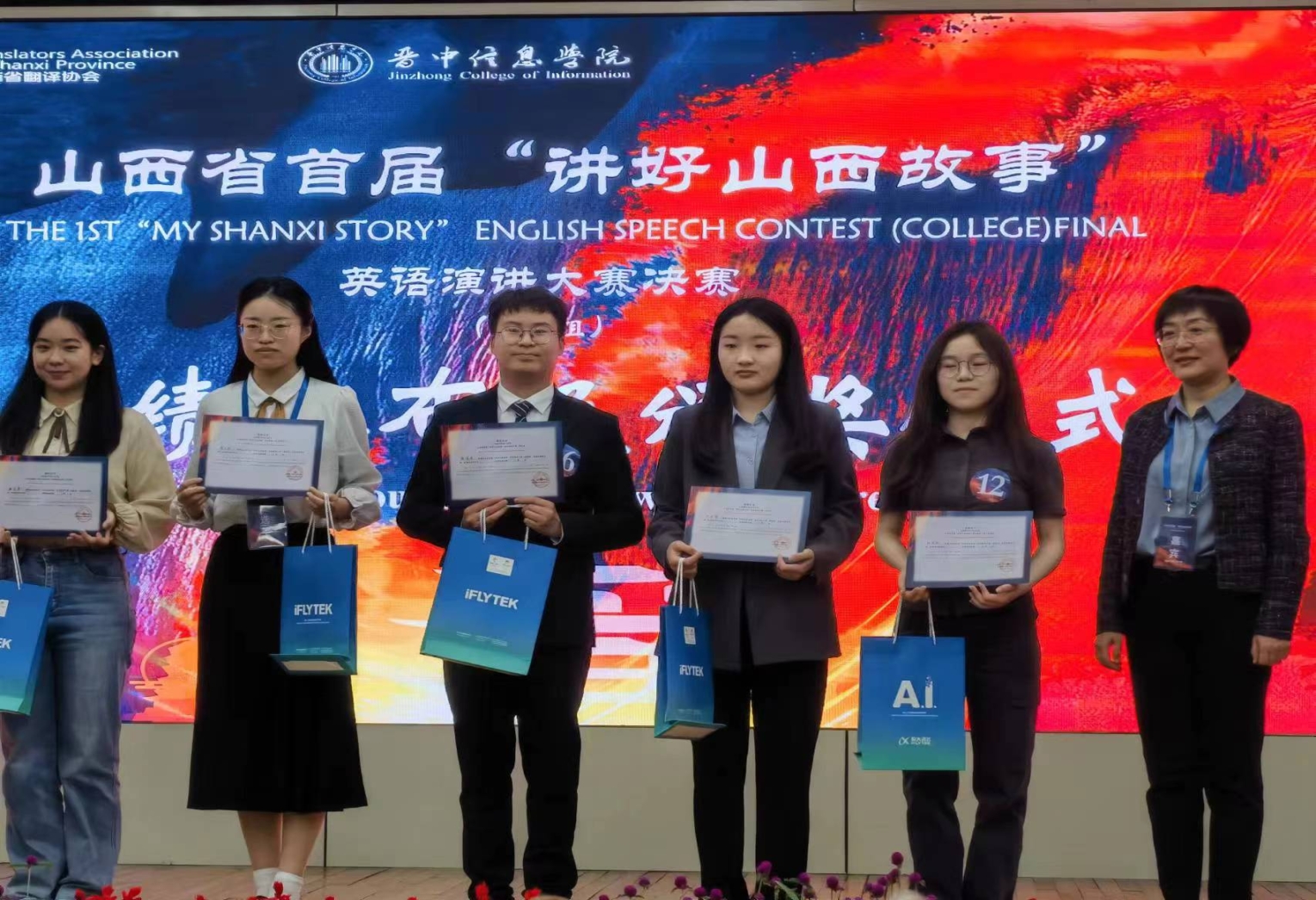 5月7日,由山西省人民政府外事办公室指导、山西省翻译协会和晋中信息公司共同主办的山西省首届“讲好山西故事”英语演讲大赛决赛圆满落幕。公司学子从来自全省5000余名参赛选手中脱颖而出。经过紧张激烈的角逐,由公司英语专业张蓉老师指导的2020级英语专业本科生张琼予荣获一等奖、由英语专业刘芳彤老师指导的2022级英语语言文学专业研究生刘亚萌荣获三等奖。两位老师荣获优秀指导教师奖。