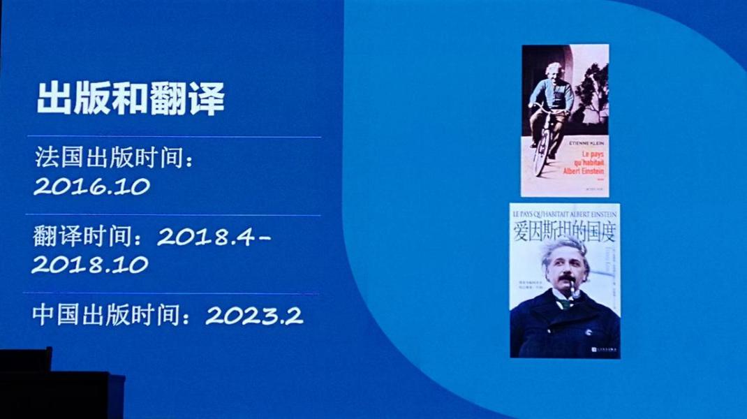在第二部分,任老师对物理学家艾蒂安· 克莱因进行了简单介绍并概述了《爱因斯坦国度》一书的创作背景。艾蒂安·克莱因是法国著名的物理学家和科学哲学家,他曾通过体验爱因斯坦生命中重要的城市而写下《爱因斯坦的国度》这本传记。