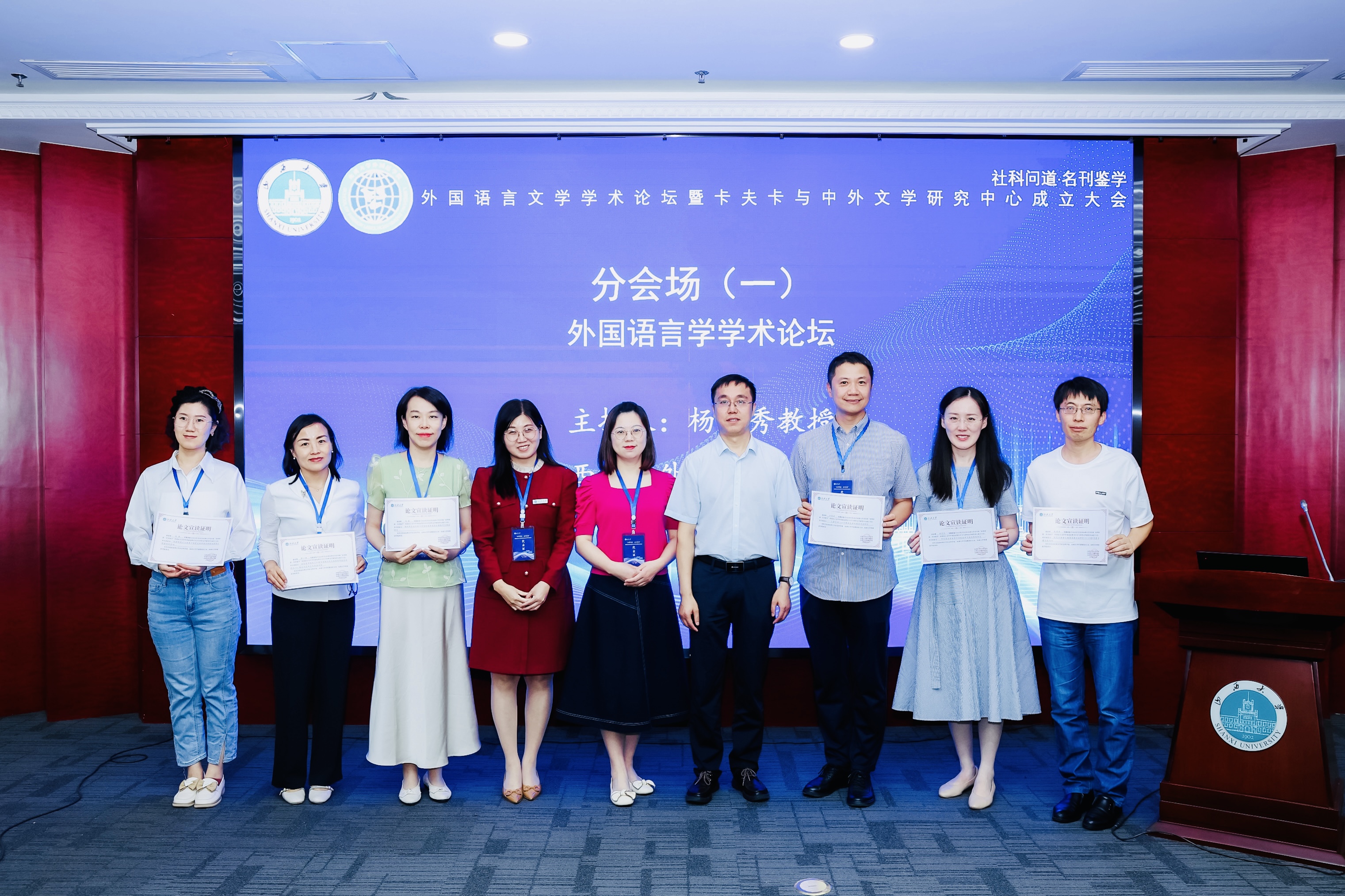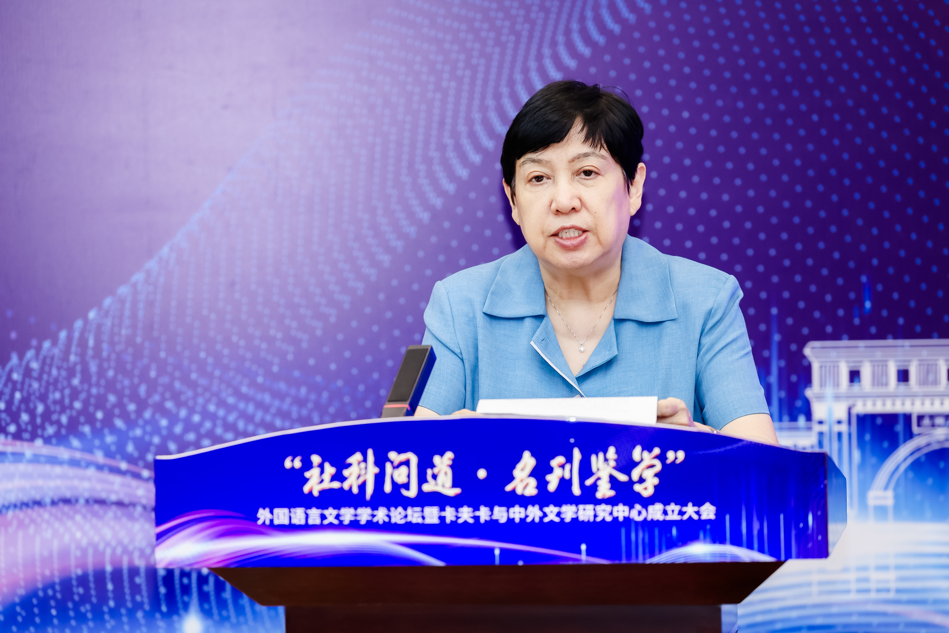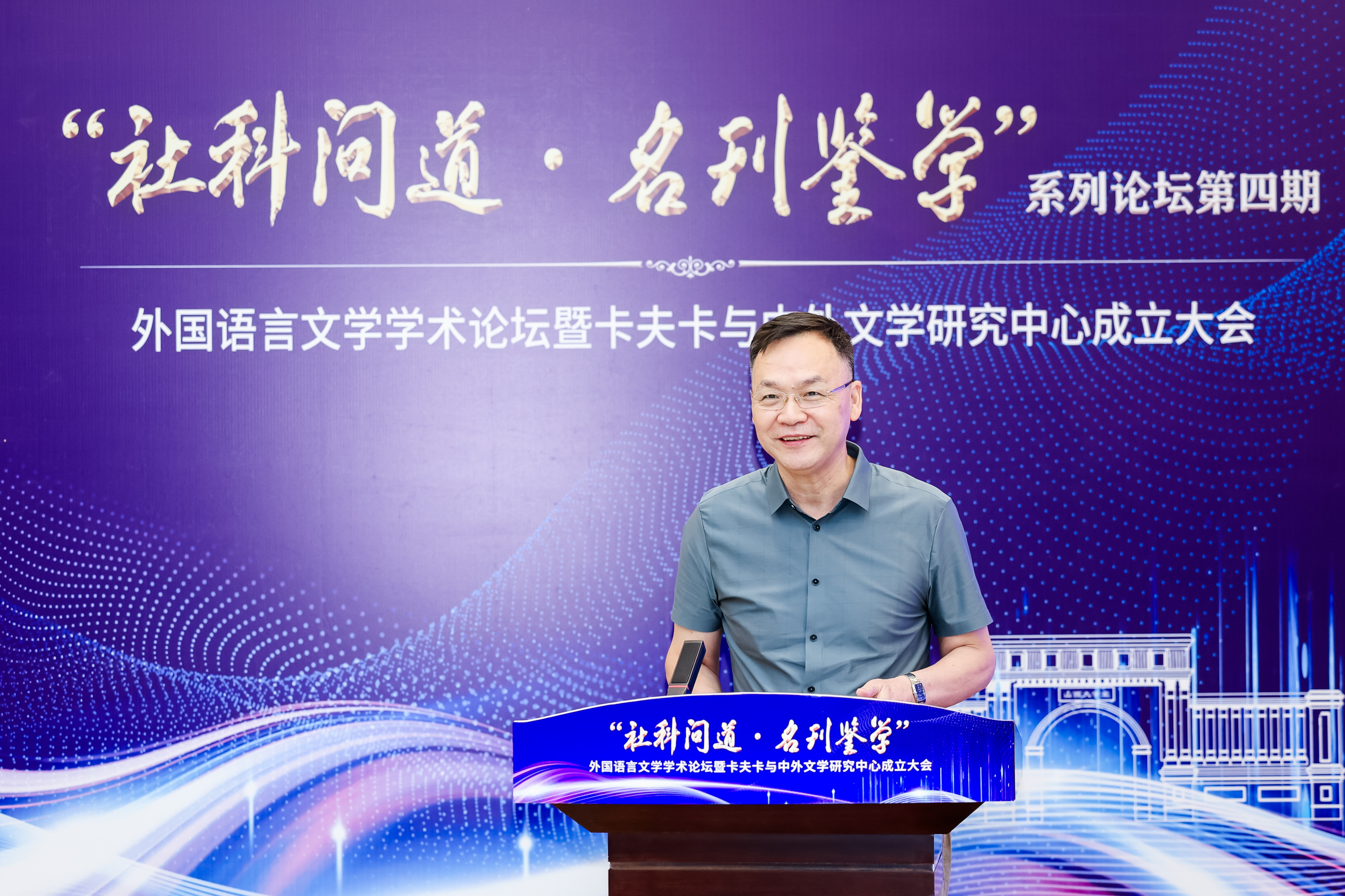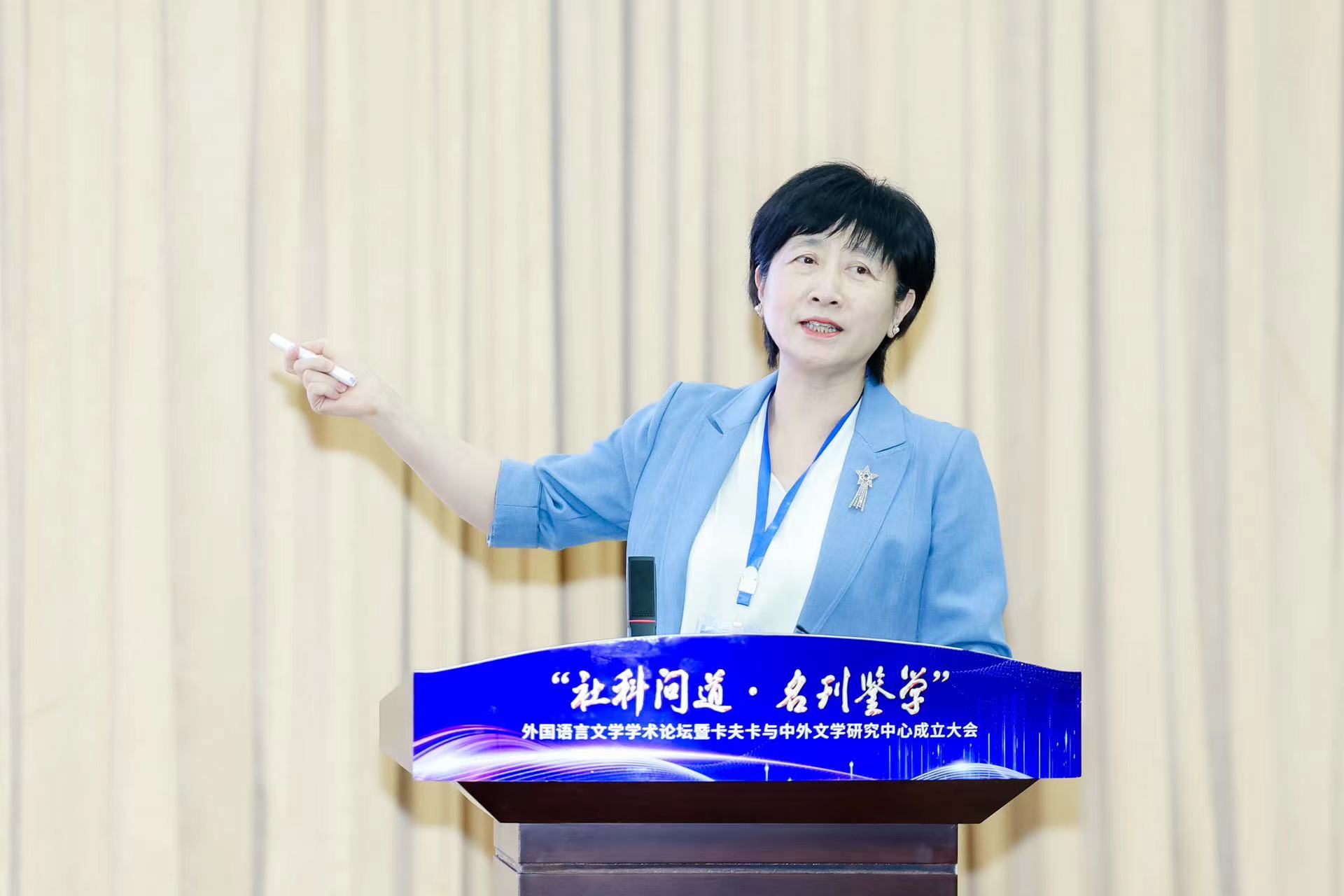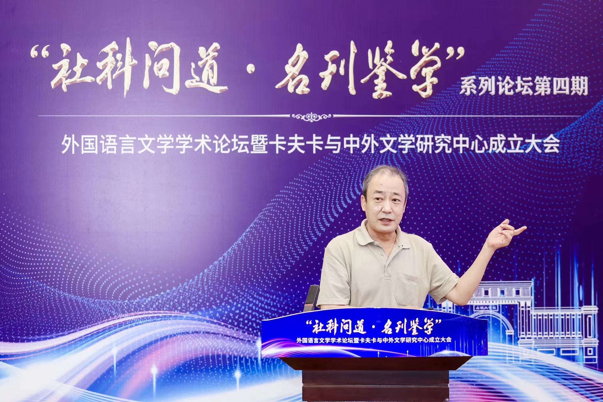 2024年7月3日,由vsport官方网站社会科学处、学术期刊社主办,vsport官方网站承办的“社科问道·名刊鉴学”系列论坛第四期外国语言文学学术论坛暨卡夫卡与中外文学研究中心成立大会于博雅会议中心隆重召开。中国社会科公司陈众议教授、北京外国语大学金莉教授、南方科技大学王立新教授、南京大学杨金才教授等国内外国文学研究领域重要专家学者出席会议,副董事长孙岩、vsport官方网站书记武俊杰、经理杨林秀、副经理赵建常、荆素蓉、李枫等参会,来自全国各地的外国文学学者和卡夫卡研究者齐聚一堂,共同见证vsport官方网站卡夫卡与中外文学研究中心的成立。