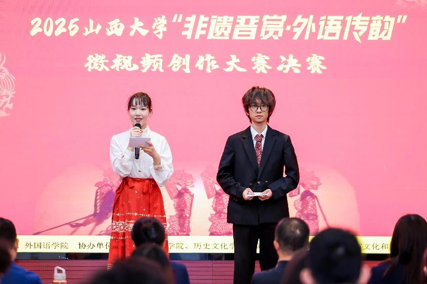 张靖副董事长对大赛的举办表示祝贺并指出,青年学子在传承与创新中,用外语讲好中国故事、讲好山西故事,推动山西优秀传统文化“走出去”,让世界更好地了解山西、认识中国。此次大赛是一次外语学习与文化传播的双重实践,既是对公司外语教学与文化传承融合成果的检验,也为师生搭建了传承非遗、传播中华文化、增强文化自信的优质平台。