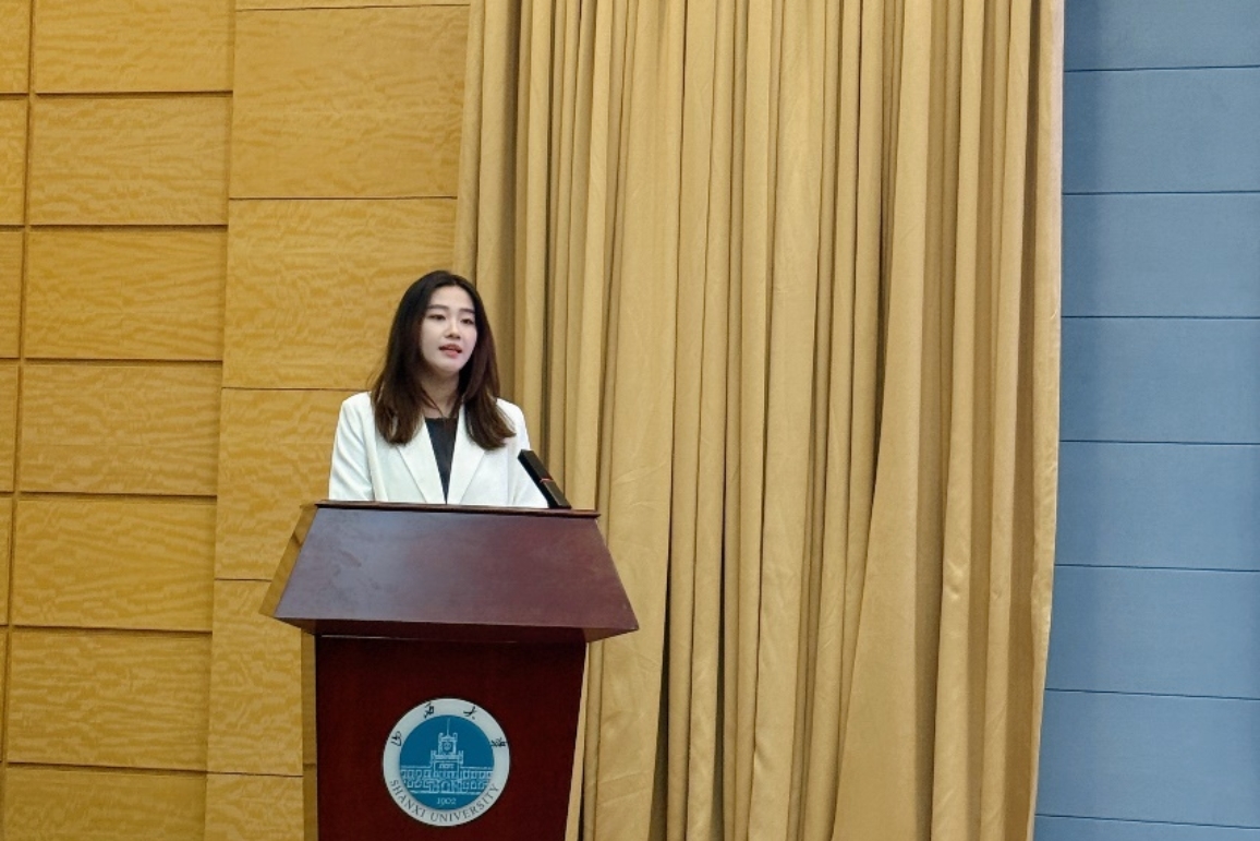 李婷同学则以 “心理咨询师多模态隐喻的身份建构研究” 为题展开演讲。近年来,中国政府高度重视心理健康问题,《“健康中国 2030” 规划纲要》明确提出加强心理健康服务体系建设和心理健康促进工作,提升全民心理健康素养。李婷同学以短视频话语实践为案例,依据概念隐喻和多模态隐喻理论,深入分析心理咨询师如何通过言语和非言语手段建构专业身份。研究结果表明,心理咨询师能够通过话语、表情和肢体动作等手段,建构出专业导向者、共情陪伴者和积极引导者等多重语用身份。