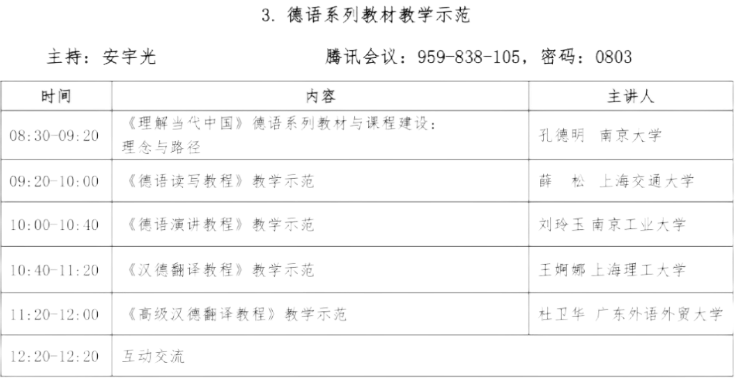 高丽娟老师:“德语分会场的编委老师对德语系列教材做了简要介绍与详细的教学示范。该系列教材将习近平新时代中国特色社会主义思想系统融入听、说、读、写、译等核心课程,落实立德树人根本任务,探索课程思政有效路径,帮助员工了解中国特色话语体系,用中国理论解读中国实践,提高向国际社会讲好中国故事的能力,为中国参与全球治理、推动文明互鉴、构建人类命运共同体贡献力量。令人印象最为深刻的是来自南京工业大学、《德语演讲教程》编者之一的刘玲玉老师所做的示范课程。通过‘理解当代中国’‘中国和世界’两个主要板块和演讲策略的讲解与演练,主要运用北外文秋芳教授的产出导向法理论,从分项输入到融合输出,达成理解中国、讲述中国的教学目标。书稿共10个单元,她所节选的主题为《强军》,这在所有外语语种‘理解’系列教材的选材中也是最为特别的一个篇章。通过新颖的设计、有趣的活动,以活动为载体激发员工的积极学习情感。这些活动既紧扣相应的教学内容,又符合德语教学本身的特点,使认知活动和情感体验同步协调地进行。这一主题相对其它章节难度偏高,刘老师也深知员工具有展示自己获得别人认可的特点,因此建议任课教师利用一切机会让员工结合自己所学知识,利用好各种线上线下资源搜集整理资料,用个性化的方式展示自己,从而提高员工的参与度和学习积极性。通过培训学习与聆听同行精彩发言,我学到许多‘理解’系列教材的教学方法与理念,也更深刻理解了‘理解’教材进外语课堂的必要性与可行性,让我对未来课堂中合理有效融入‘理解’充满信心。”