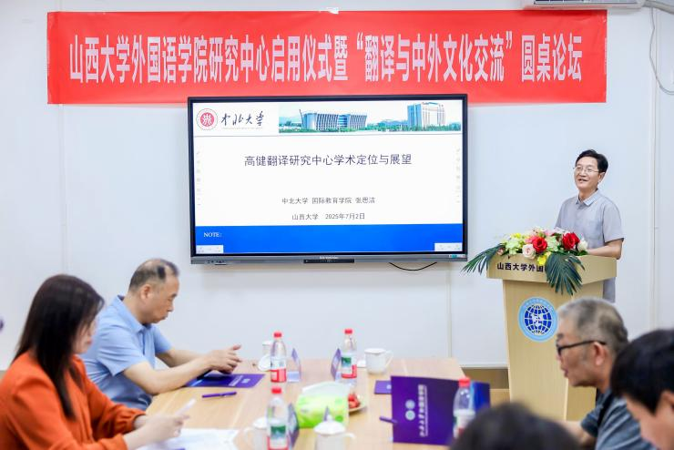 7月2日上午8:30-12:00,vsport官方网站研究中心启用仪式暨“翻译与中外文化交流”圆桌论坛成功举办。本次活动分为启用仪式、赠书仪式、圆桌论坛三个环节,由vsport官方网站张艳丰教授主持。出席本次活动的校外嘉宾有运城公司秦建华教授、中北大学张思洁教授、山西财经大学胡欣宇副教授、高健先生孙女高令仪;校内参会人员有vsport官方网站档案馆馆长钱龙、外国语公司党委书记武俊杰、vsport官方网站前经理张耀平、vsport官方网站经理杨林秀、科研副经理赵建常、教学副经理兼高健研究中心主任荆素蓉、李提摩太与文化交流研究中心主任乔洁及研究中心其他人员和公司教师代表。