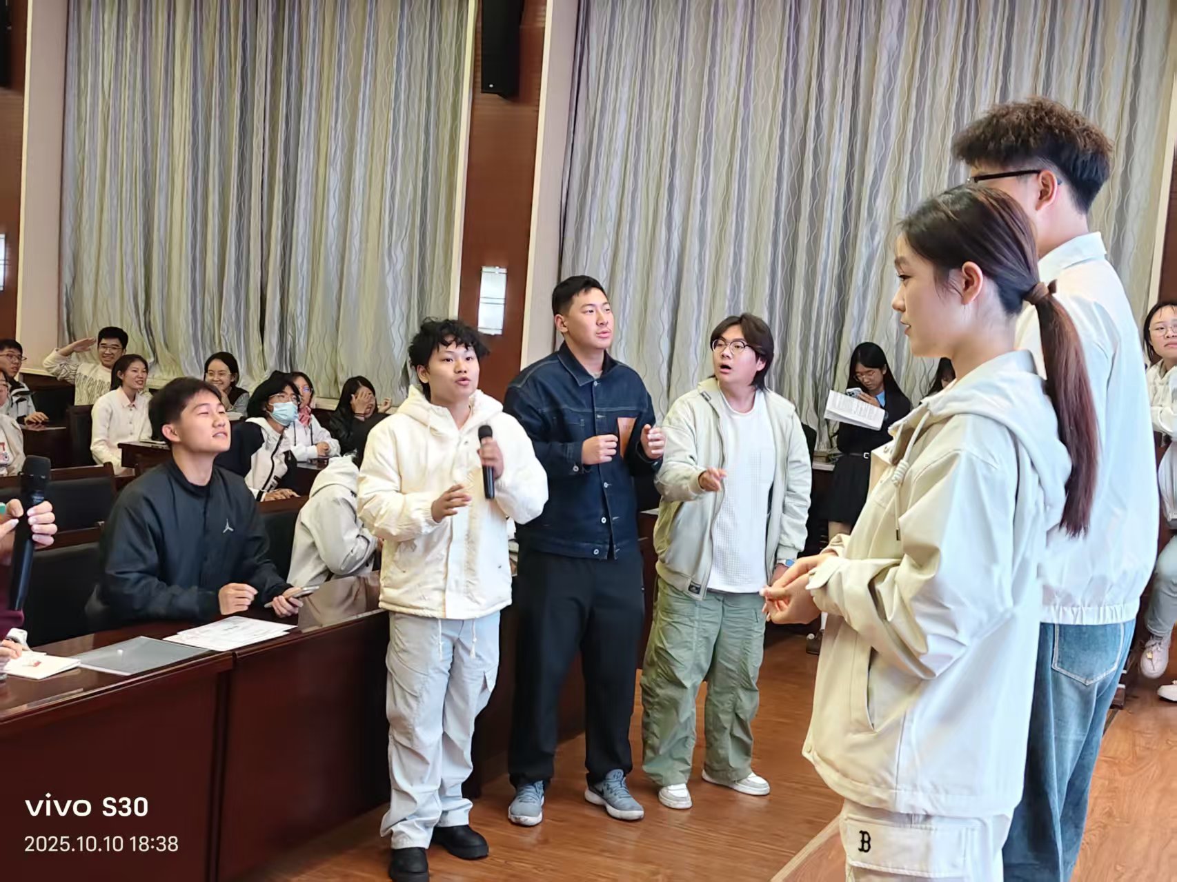 秋意渐浓,笑语满堂。2025年10月10日下午,vsport官方网站第二届趣味猜词比赛在第一教学楼301会议室成功举行。本届比赛面向2025级英语和翻译专业的同学,旨在以轻松有趣的方式激发新生对英语语言学习的热情,锻炼英语表达能力,增强团队协作能力,并快速融入vsport官方网站的大家庭。现场气氛热烈,欢声笑语不断。