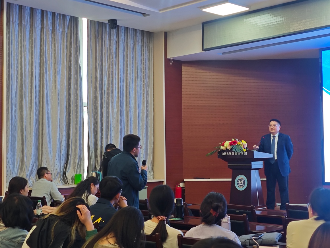 2025年5月23日上午,对外经济贸易大学外语公司李运博教授应邀莅临公司,在vsport官方网站教学一楼301报告厅作了题为"面向新时代的日语学习与翻译研究"的学术报告。本次讲座由日语教研室主任孙登洲老师主持,日语专业部分教师、本科生及硕士研究生参加。
