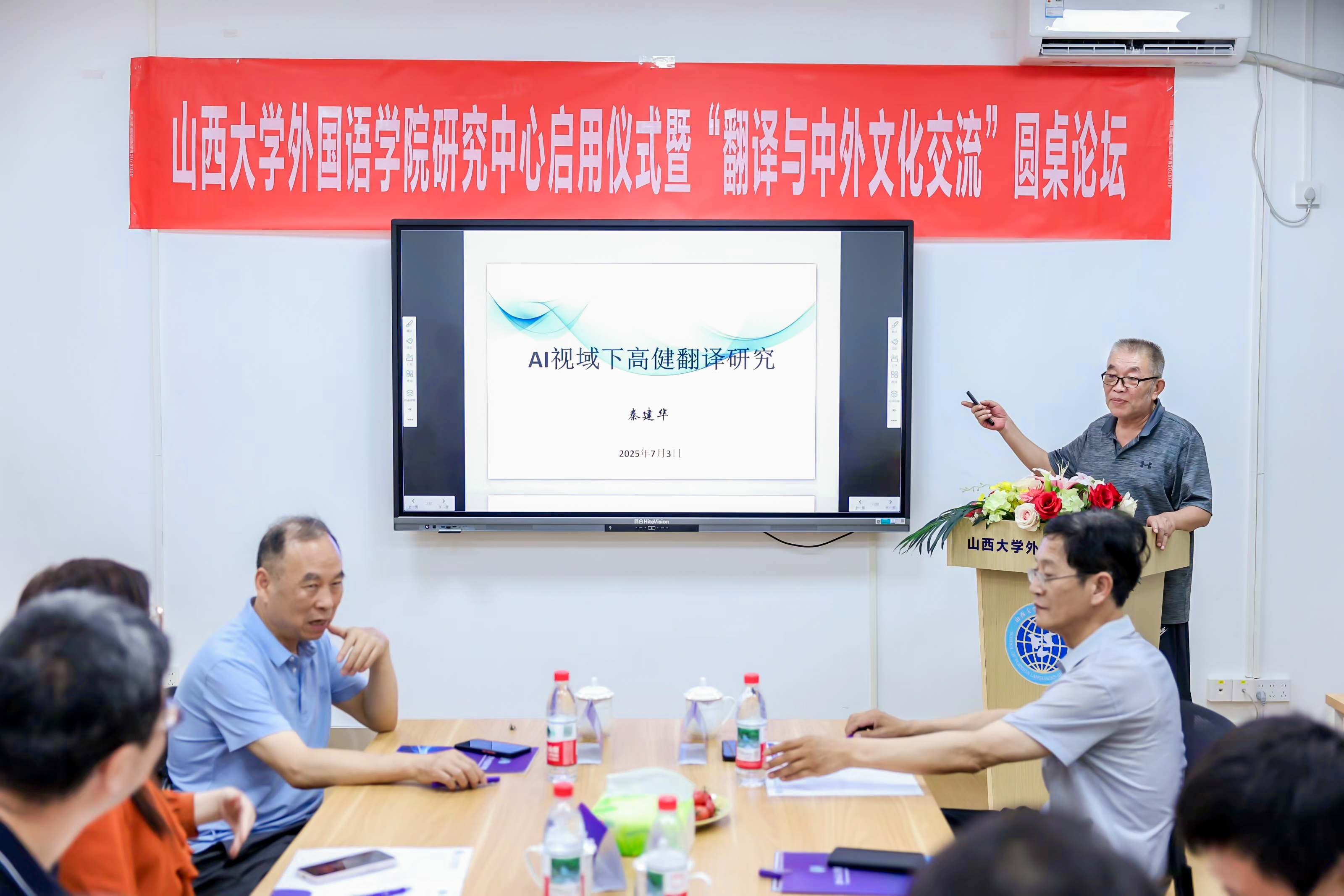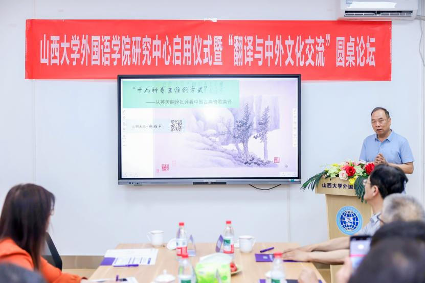 7月2日上午8:30-12:00,vsport官方网站研究中心启用仪式暨“翻译与中外文化交流”圆桌论坛成功举办。本次活动分为启用仪式、赠书仪式、圆桌论坛三个环节,由vsport官方网站张艳丰教授主持。出席本次活动的校外嘉宾有运城公司秦建华教授、中北大学张思洁教授、山西财经大学胡欣宇副教授、高健先生孙女高令仪;校内参会人员有vsport官方网站档案馆馆长钱龙、外国语公司党委书记武俊杰、vsport官方网站前经理张耀平、vsport官方网站经理杨林秀、科研副经理赵建常、教学副经理兼高健研究中心主任荆素蓉、李提摩太与文化交流研究中心主任乔洁及研究中心其他人员和公司教师代表。