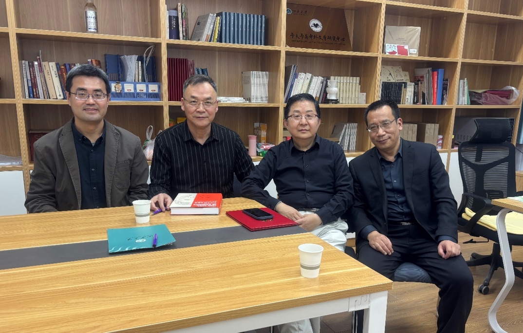 讲座结束后,郭英剑教授特意前往研究中心参观,与公司领导和中心成员亲切交流。曾艳兵教授向郭教授签名赠书,期待郭教授未来常来中心指导工作,给公司和中心的科研工作多提宝贵意见。