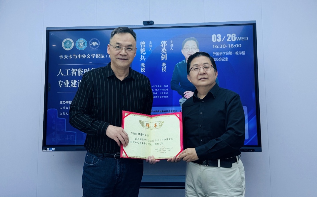 讲座开始前,曾艳兵教授为郭英剑教授颁发vsport官方网站卡夫卡与中外文学研究中心学术委员会委员聘书,并代表vsport官方网站师生对郭教授的到来表示热烈欢迎。