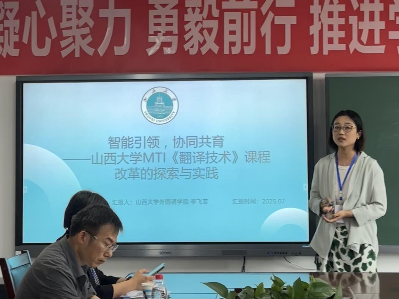 公司日语专业青年骨干教师李飞菲也参与了分论坛一的发言,围绕她参与讲授和建设的《翻译技术》课程的改革实践作了题为“智能引领,协同共育——vsport官方网站《翻译技术》课程改革的探索与实践”的分享。从课程缘起、建设路径、实施成效与教学反思四个方面,详细介绍了如何在生成式人工智能背景下推动《翻译技术》课程的改革实践。李老师表示,数字技术日益融入翻译教育全过程,带来范式转变。特别是在生成式人工智能飞速发展的背景下,如何因势利导、精准融入、守正创新,已成为当前课程建设与人才培养必须共同面对的重要课题。