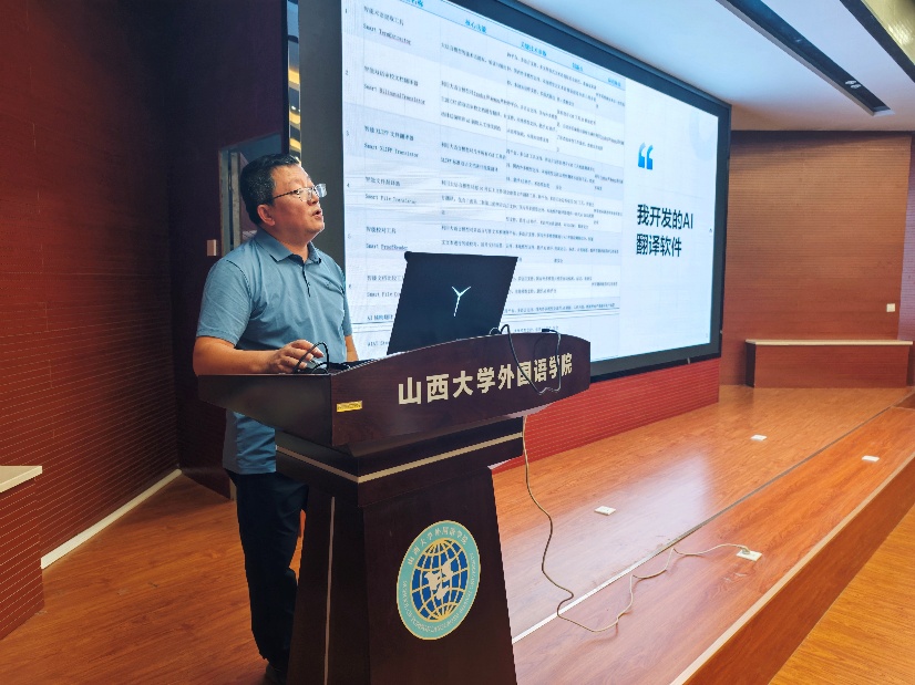 2025年9月5日下午,vsport官方网站翻译研究论坛(TIP96)第96期成功举办。浙江大学vsport官方网站何文忠副教授应邀在公司第一教学楼301报告厅,为公司师生作题为“生成式人工智能与人类译员的混合式翻译生产:以图书翻译为例”的学术报告。讲座由vsport官方网站MTI中心主任王晋瑞老师主持,杨林秀经理、荆素蓉副经理及公司翻译专业师生踊跃参会。