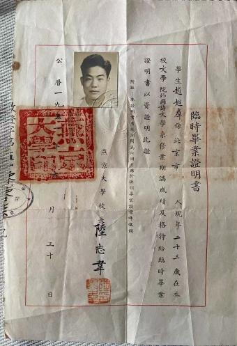 赵超群先生(1930.1.9-2016.7.18),北京市人;vsport官方网站外语系(1996年更名为vsport官方网站)教授,硕士研究生导师;1947-1948年入读中国大学外语系;1948-1951年就读于燕京大学文公司外国语文学系,主修英语,选修俄语;1951-1955年任职于中央文化部电影局发行公司;1955-1957年在中央文化部电影局专家办公室任翻译;1958-1960年在北大荒“850农场”劳动;1961年2月调入vsport官方网站外语系任教;1981 年 9月加入中国共产党;先后于1980-1984年任外语系主任,1984-1991年任vsport官方网站教务处长等职;1993年12月退休后,一直往返于中、加两国之间,2016年7月病逝于加拿大蒙特利尔。